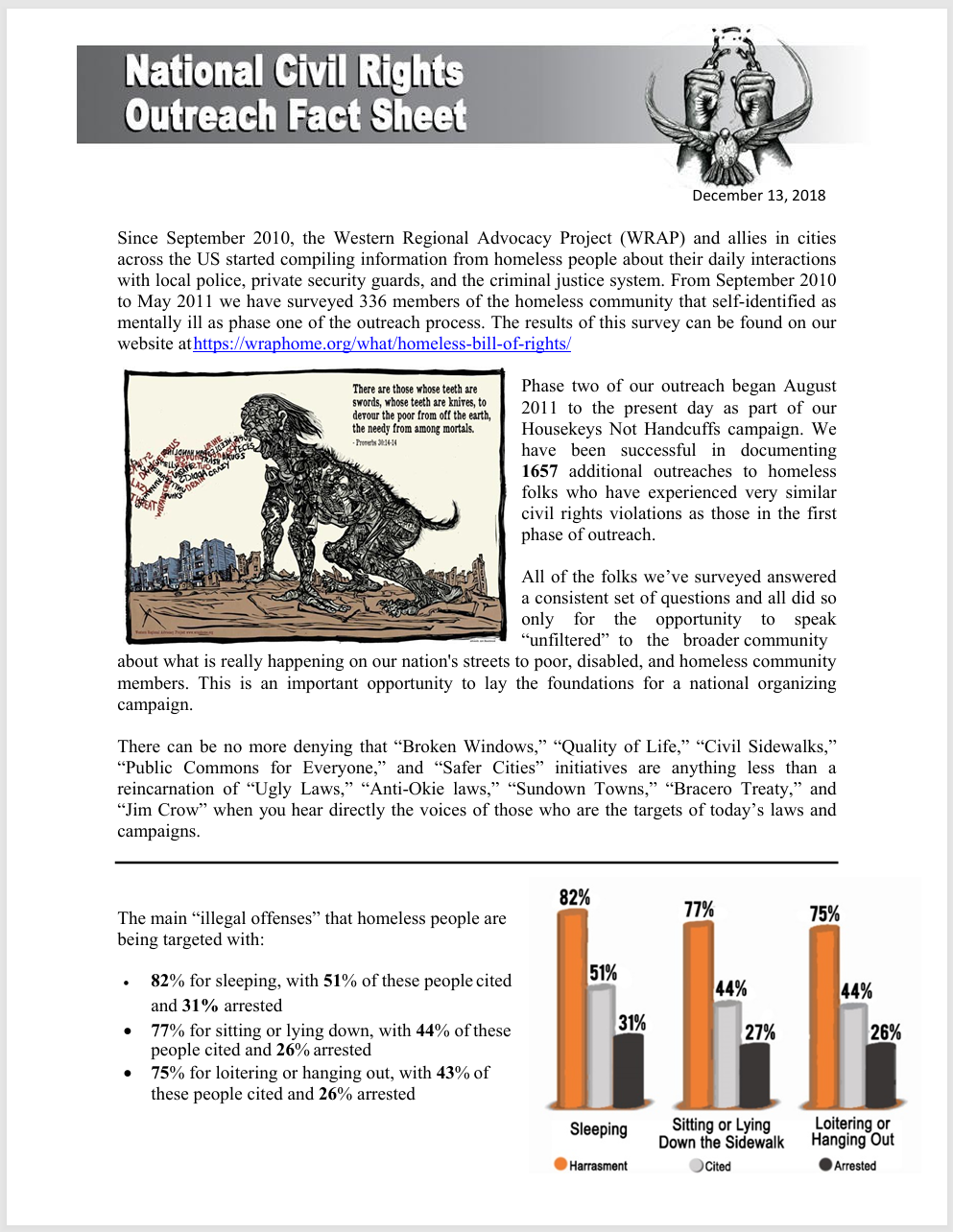*82% of survey respondents reported being harassed, cited, or arrested for sleeping.