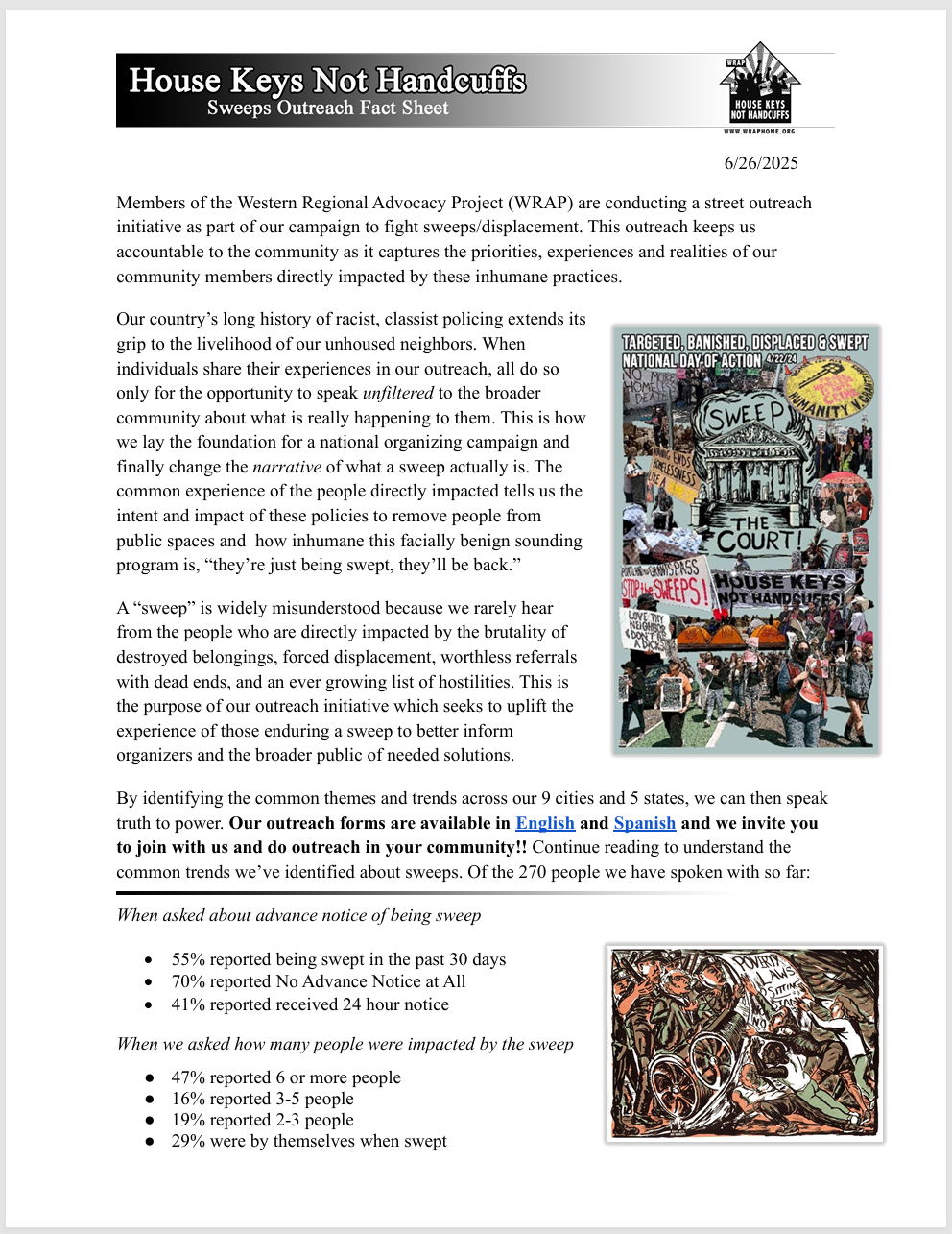With sweeps and fascist policing/immigration tactics ramping up all over the country, we must make sure our initiatives to fight them are informed by, come from and are supported by the people who are directly impacted!!! Street outreach is how we do this!